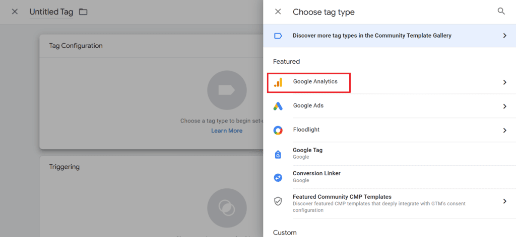 9. Click the Pencil icon in the right corner and select Google Tag.