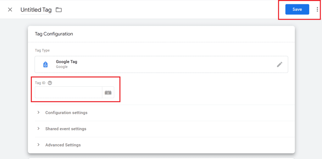 10. You can find a space to add Tag ID, now paste the GA-4 Measurement ID and Click Save.